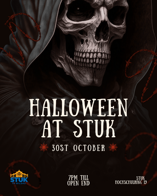 Am 31. Oktober ab 19:00 Uhr wird es wieder gruselig auf dem Campus! Der StuK lädt zur Halloween-Feier im Studierendenklub in Haus 19 ein.